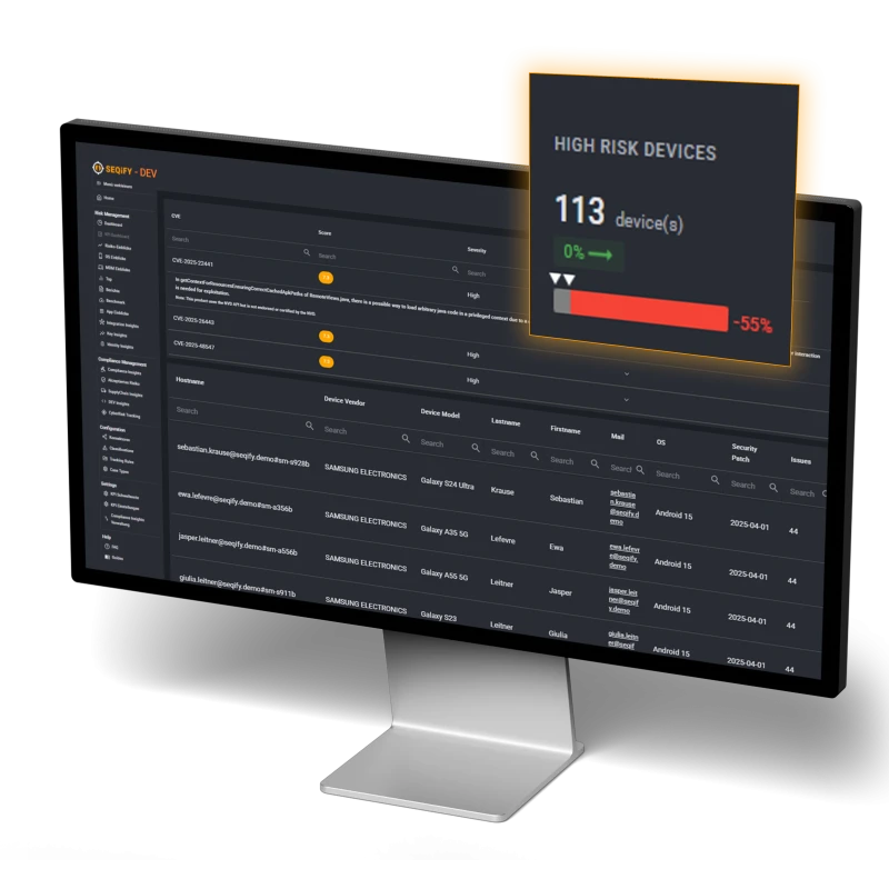 SEQIFY zeigt klar, wo Risiken entstehen, wie sie sich entwickeln und welche Maßnahmen wirklich Wirkung zeigen – ohne manuelle Analyse oder Excel-Abgleiche.
