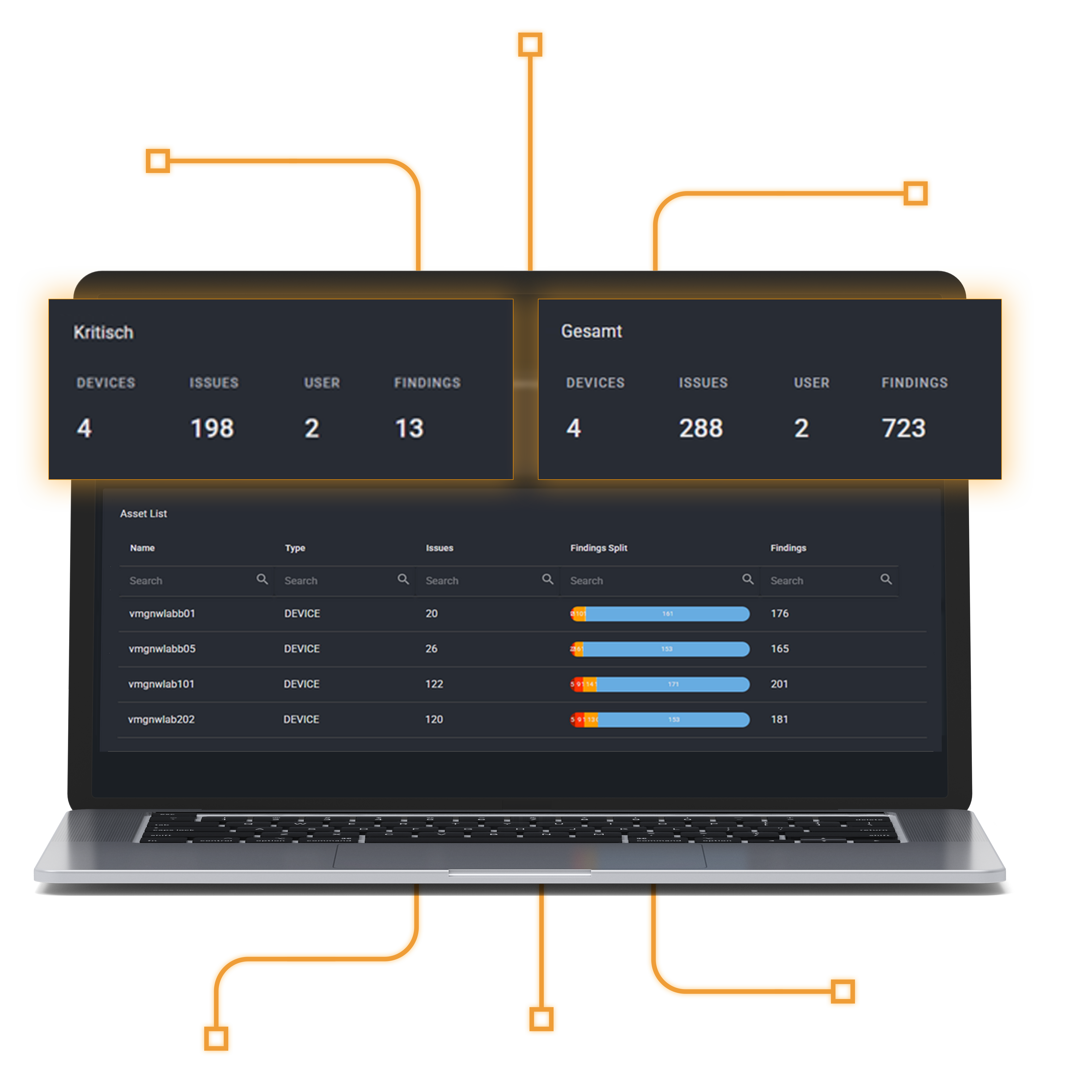 Alle Findings werden automatisch den jeweiligen Assets zugeordnet und mit CMDB-, MDM- oder Directory-Daten ergänzt.