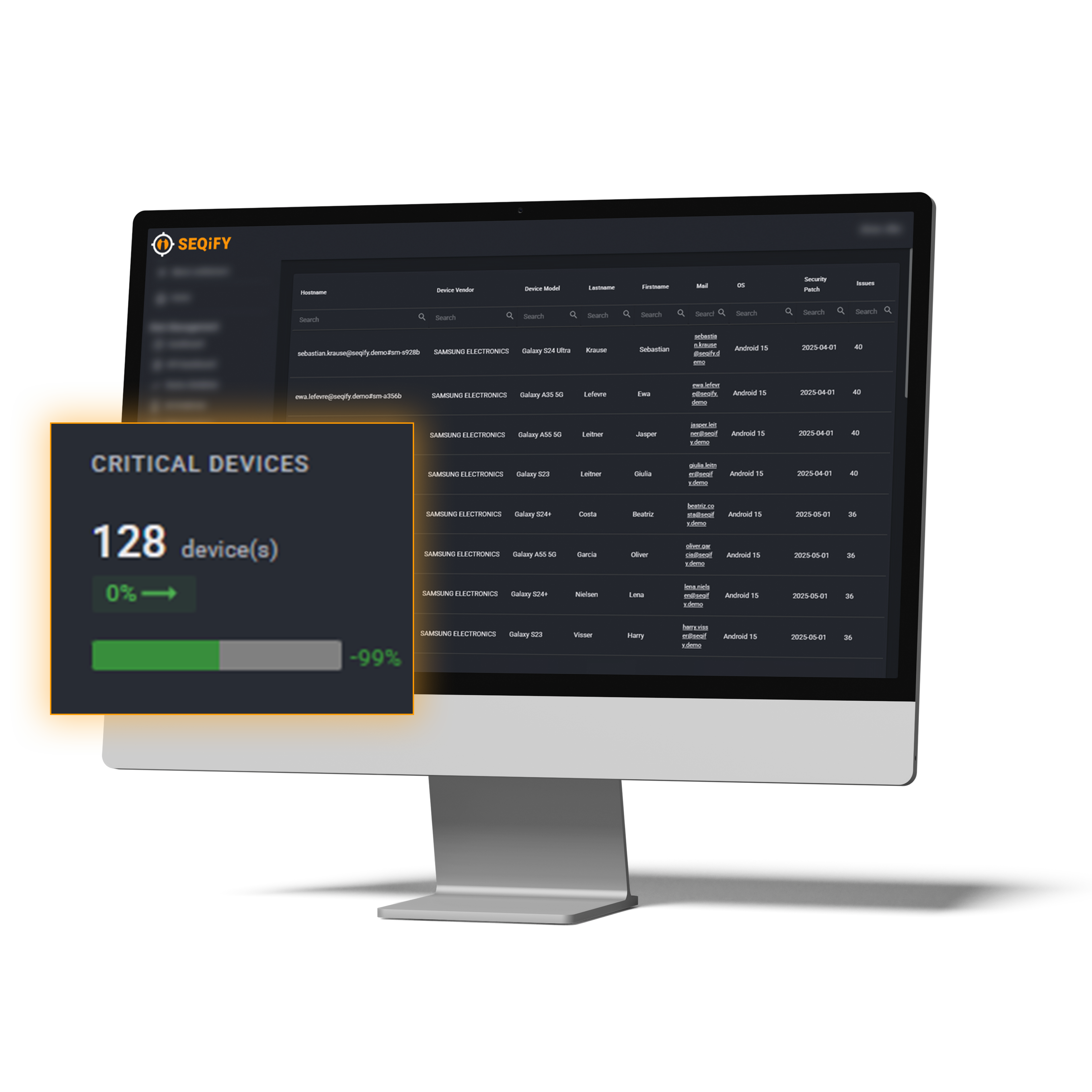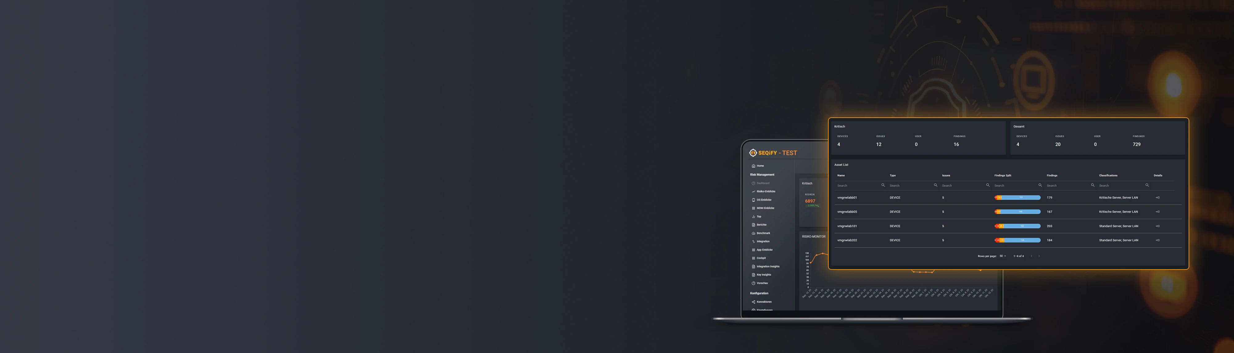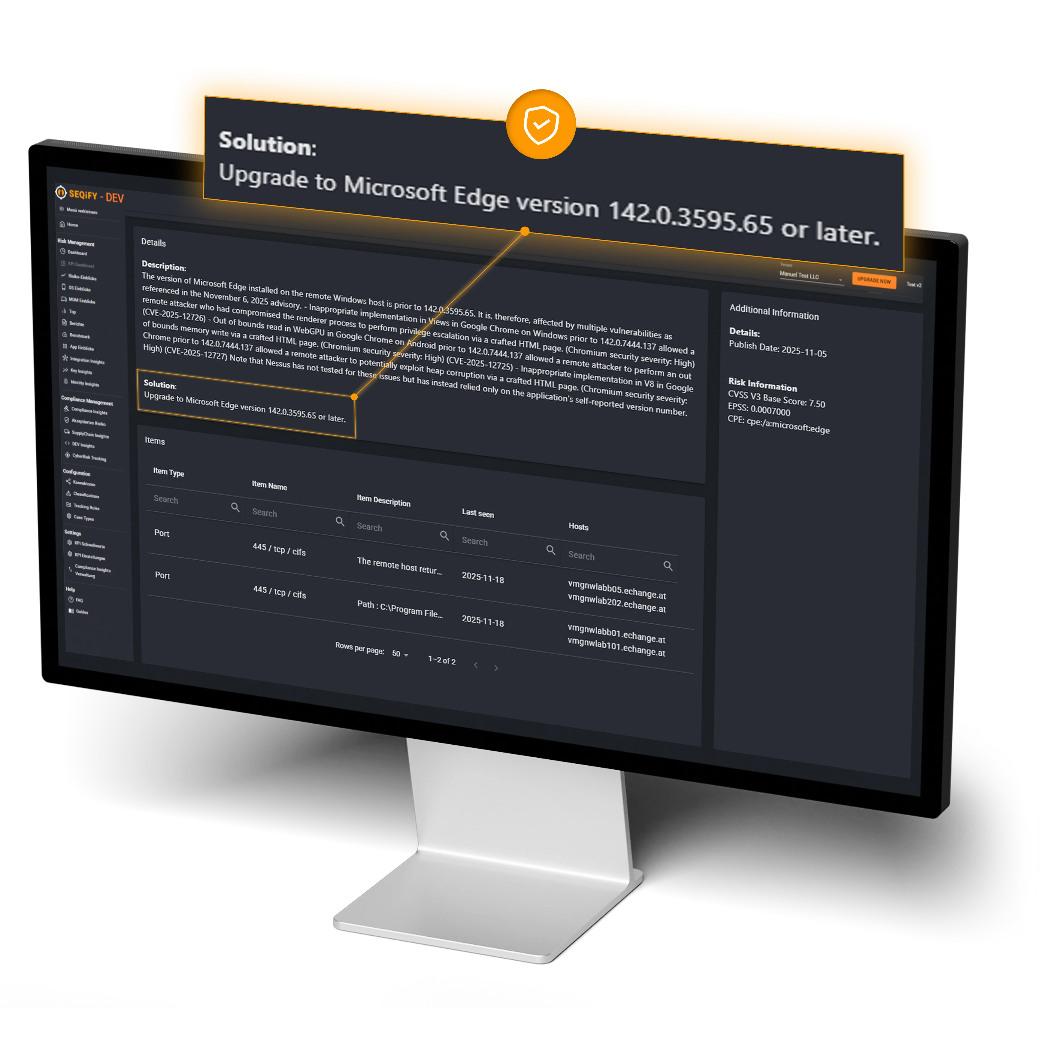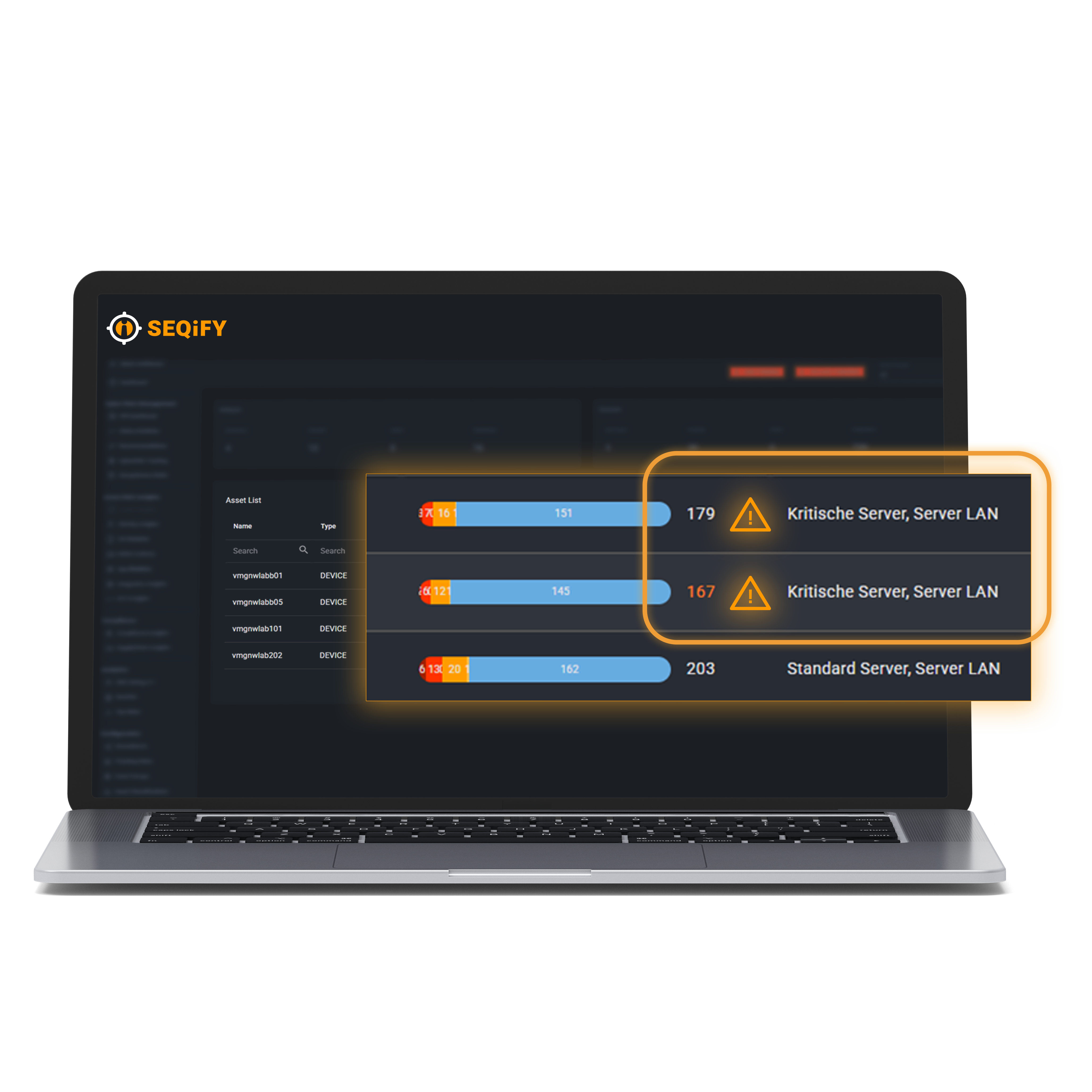 In den SEQiFY Asset Insights erhält das IT-Management klare, sofort verwertbare Informationen: Welche Risiken kritisch sind, welche Systeme betroffen sind und welche Maßnahmen Priorität haben.