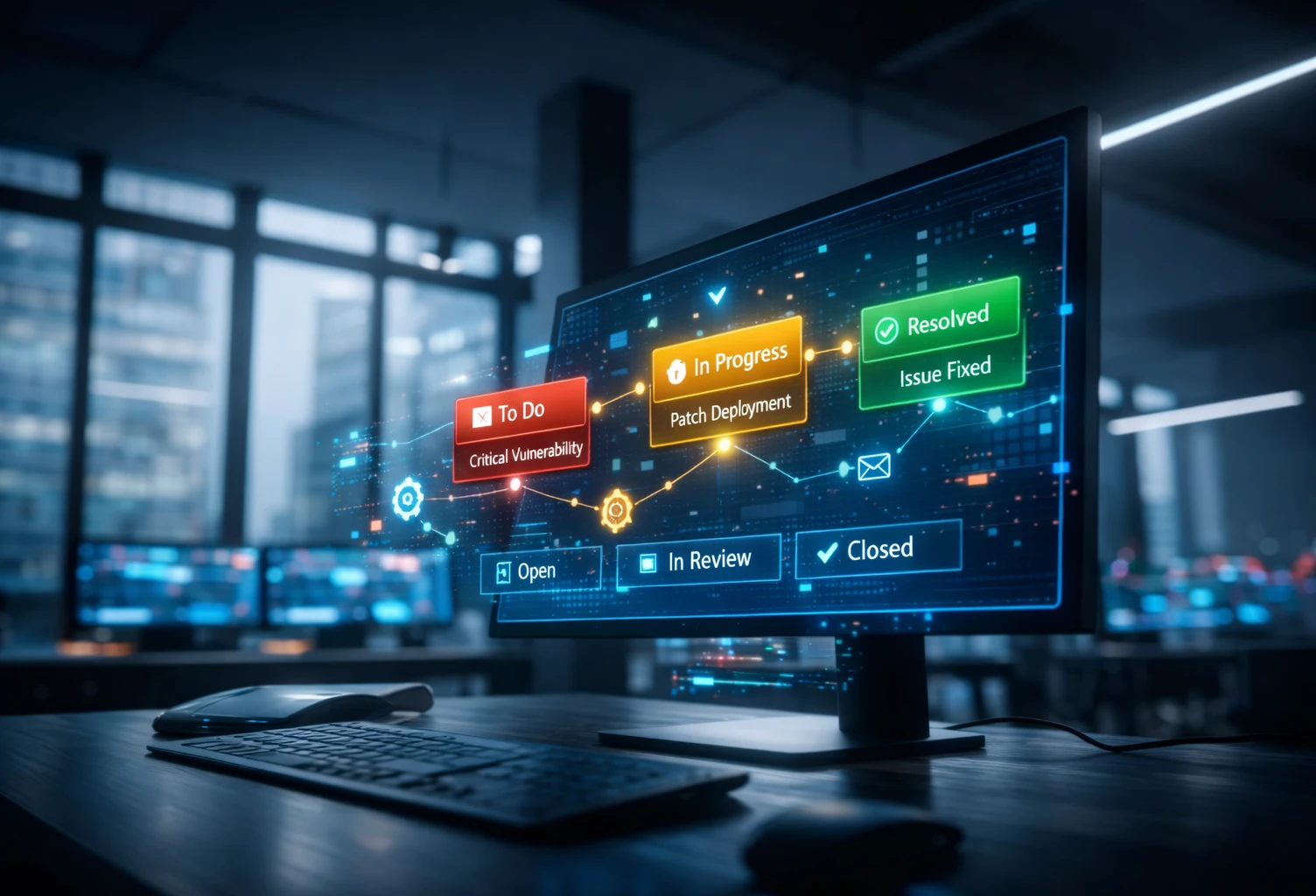 Maßnahmen werden in Tickets übersetzt und Zuständigkeiten sauber zugeordnet – so reduziert sich Ping-Pong zwischen Teams und Aufgaben bleiben nicht liegen.