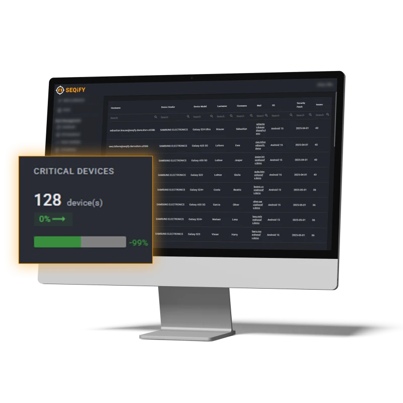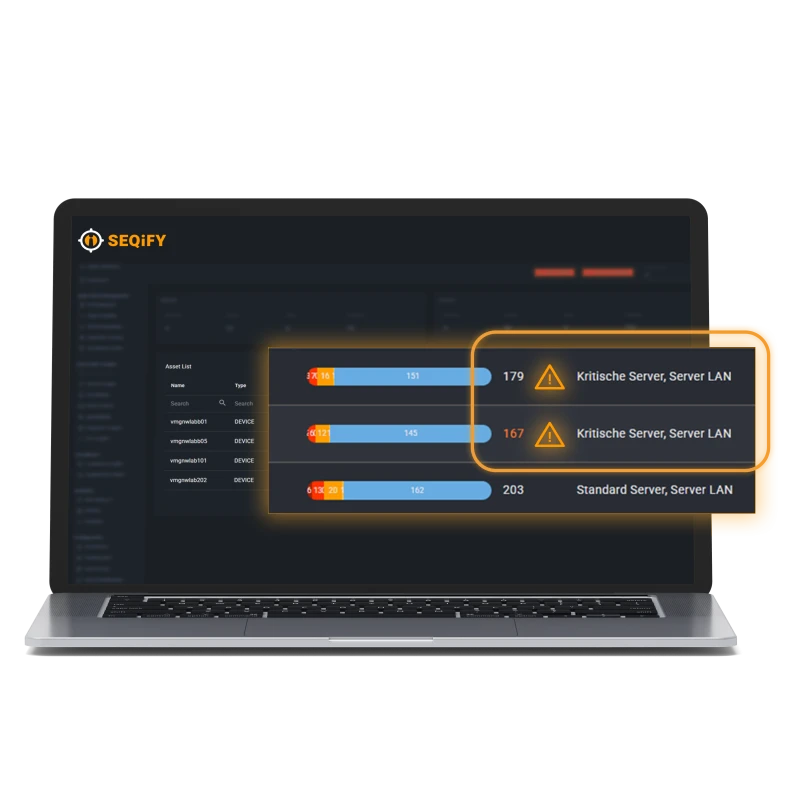 In den SEQiFY Asset Insights erhält das IT-Management klare, sofort verwertbare Informationen: Welche Risiken kritisch sind, welche Systeme betroffen sind und welche Maßnahmen Priorität haben.