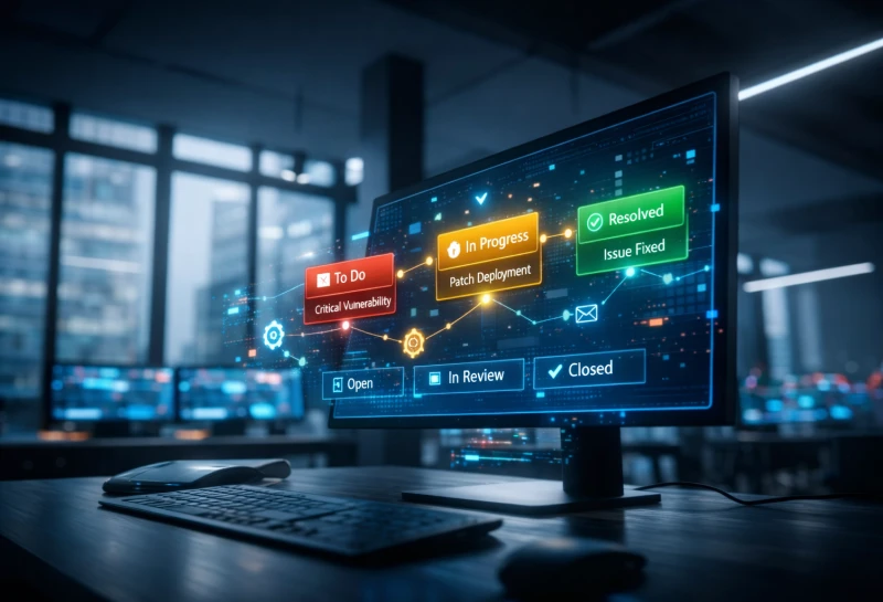 Maßnahmen werden in Tickets übersetzt und Zuständigkeiten sauber zugeordnet – so reduziert sich Ping-Pong zwischen Teams und Aufgaben bleiben nicht liegen.
